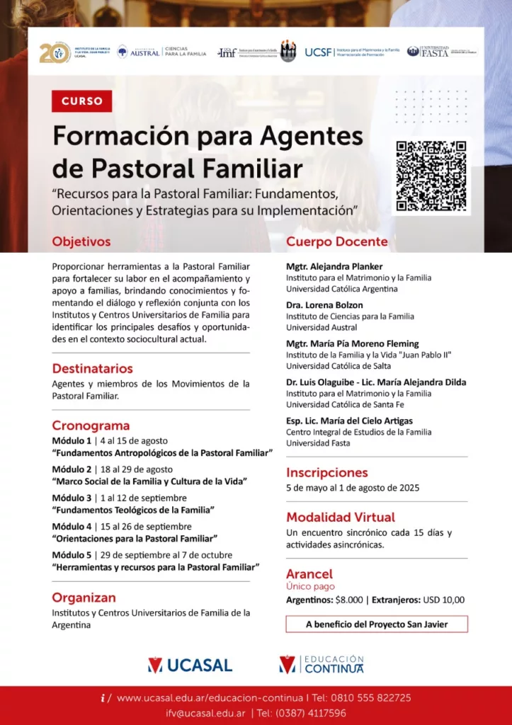 La iniciativa cuenta con el respaldo de la Universidad Católica de Salta, la Universidad Austral, la Universidad Católica Argentina, la Universidad Católica de Santa Fe y la Universidad FASTA, consolidando una propuesta académica de calidad y con fuerte anclaje en la realidad pastoral.