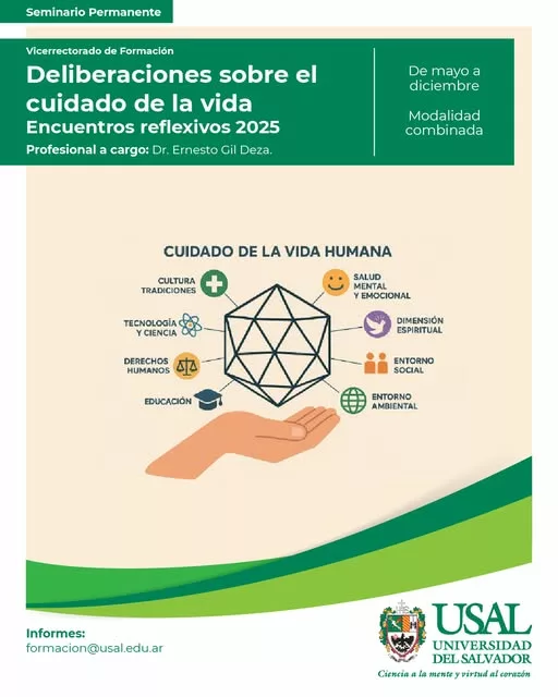 En el marco de una propuesta formativa que busca iluminar los desafíos del presente desde una mirada cristiana, el Vicerrectorado de Formación de la Universidad del Salvador (USAL) invita a participar del seminario permanente “Deliberaciones sobre el cuidado de la Vida – Encuentros reflexivos 2025”, una iniciativa abierta a toda la comunidad de la Red de Universidades Católicas, entre ellas UCASAL.