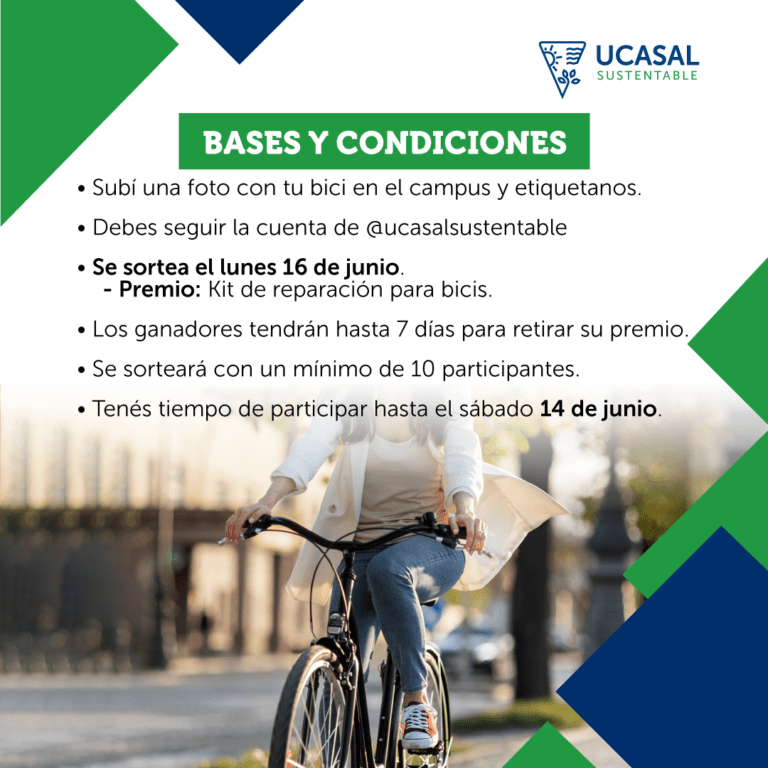 “Pedaleá hacia un futuro más verde”, invita a los estudiantes, docentes y personal de UCASAL que se desplacen en bicicleta, a participar de un sorteo por un kit de reparación para bicis, pensado para acompañar el mantenimiento de este medio de transporte ecológico.