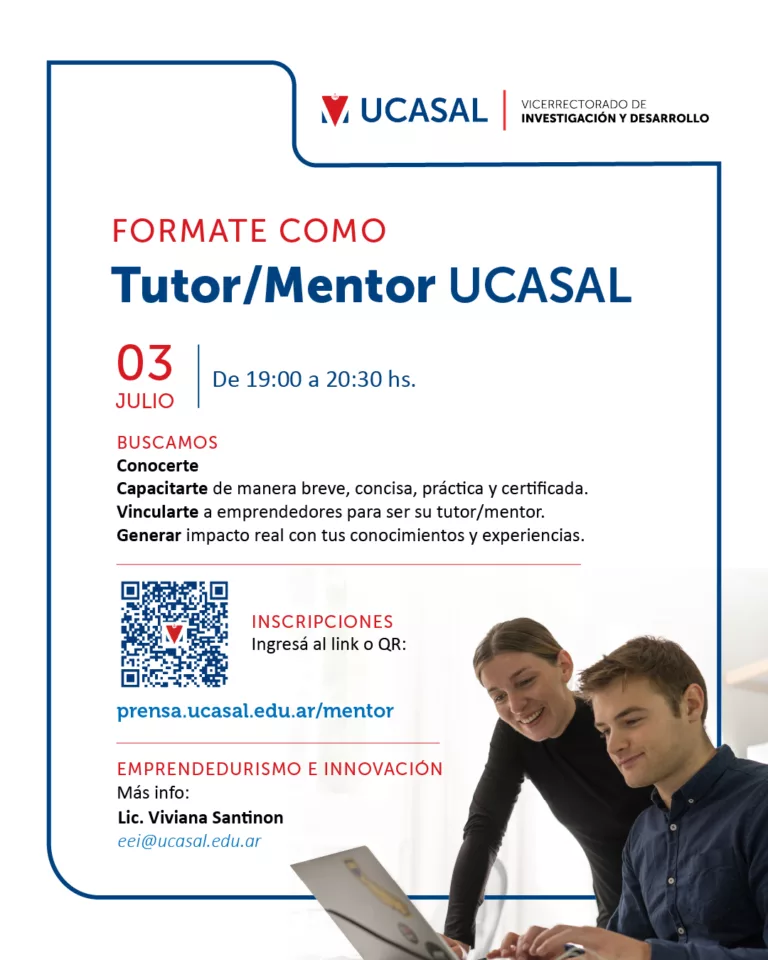 La Universidad Católica de Salta invita a participar de un nuevo taller de formación para integrar la Red de Tutores y Mentores UCASAL, una propuesta pensada para quienes deseen acompañar a emprendedores a través de la tutoría y la mentoría.