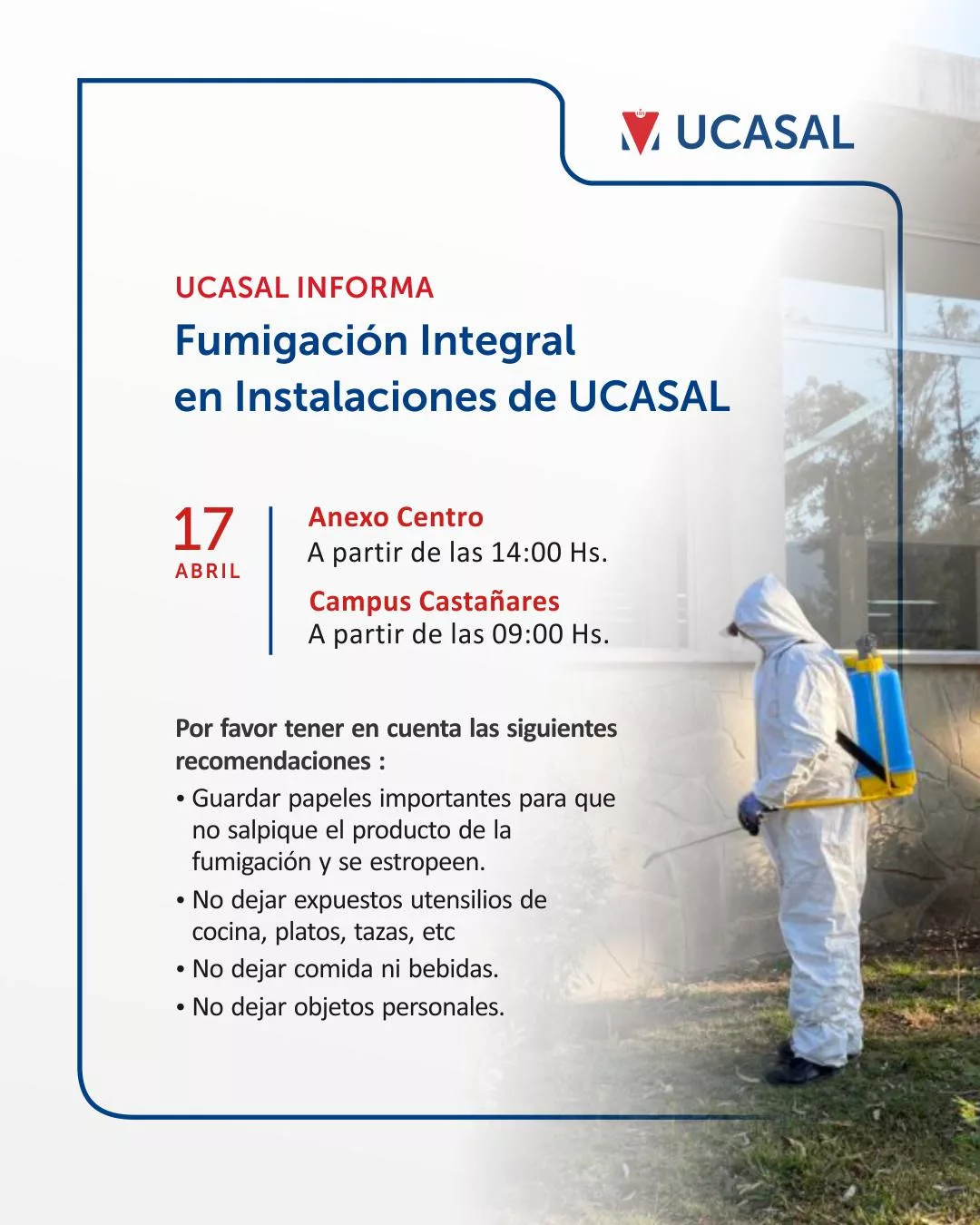 La Universidad Católica de Salta informa que el próximo 17 de abril se realizará una fumigación integral en las siguientes instalaciones:
