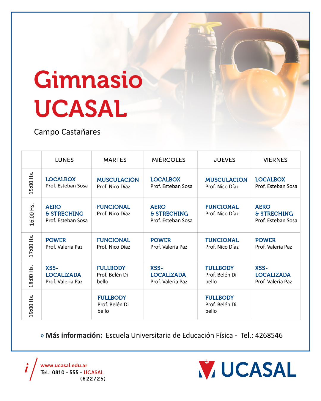 Contará con las siguientes actividades: GAP, Funcional, Localizada, Power, Pilates y Aerobox trainning.