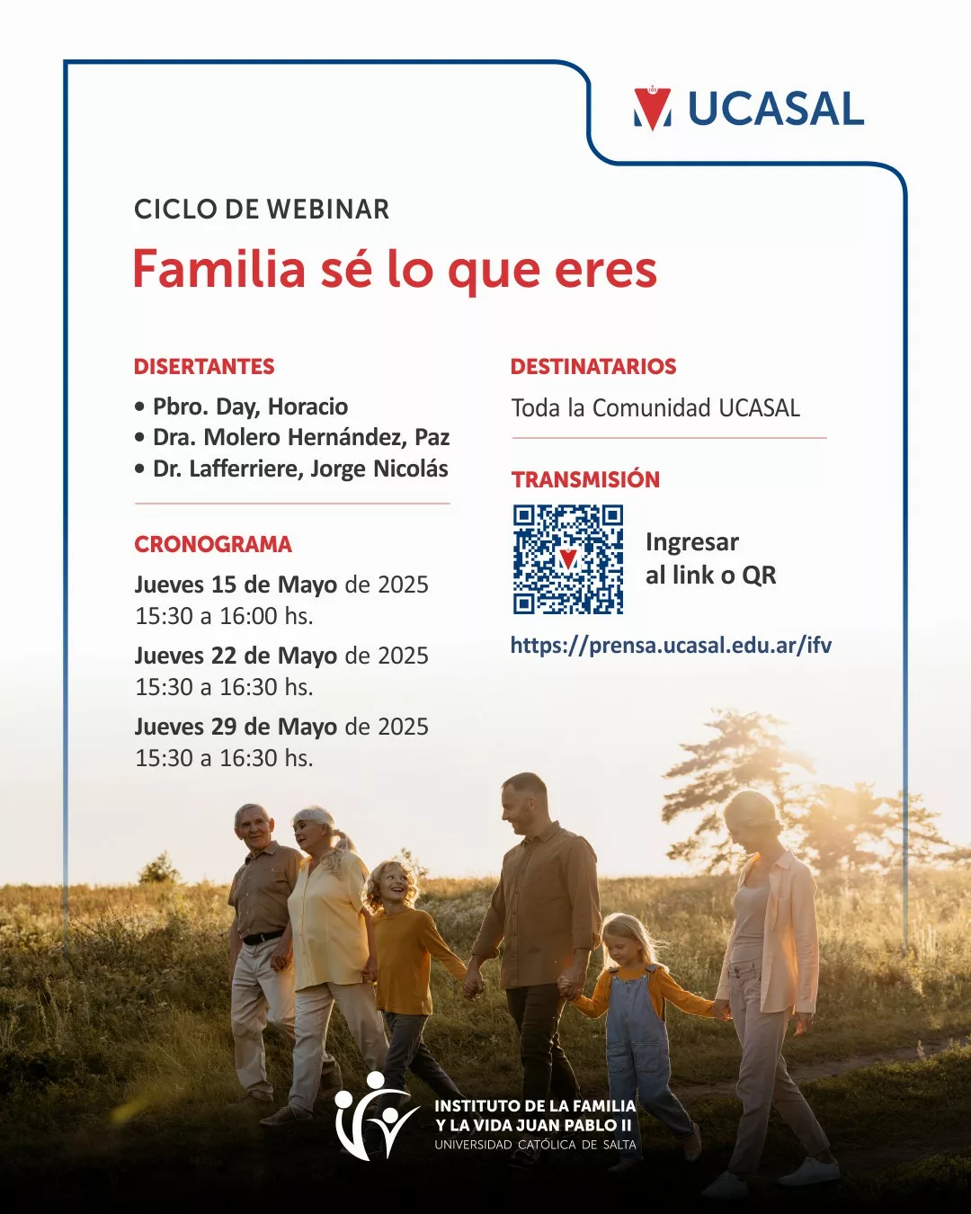 Un ciclo donde el IFV UCASAL se muestra puertas abiertas para acercar testimonios reales de familias, con una mirada positiva y ejemplificadora ante los desafíos que ella implica en el marco del Family Global Compact que llama a las Universidades a comprometerse mediante un esfuerzo formativo que ponga de relieve la cotidianidad de la vida familiar.