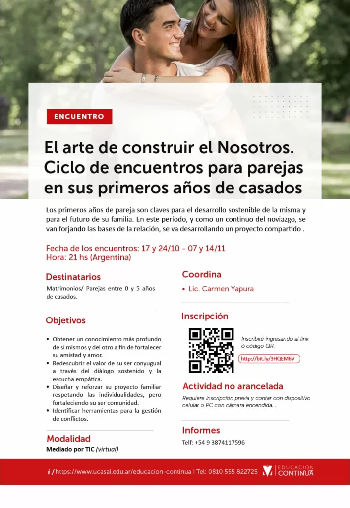 ENCUENTRO: EL ARTE DE CONSTRUIR EL NOSOTROS. CICLO DE ENCUENTROS PARA PAREJAS EN SUS PRIMEROS AÑOS DE CASADOS. RR 765/2025