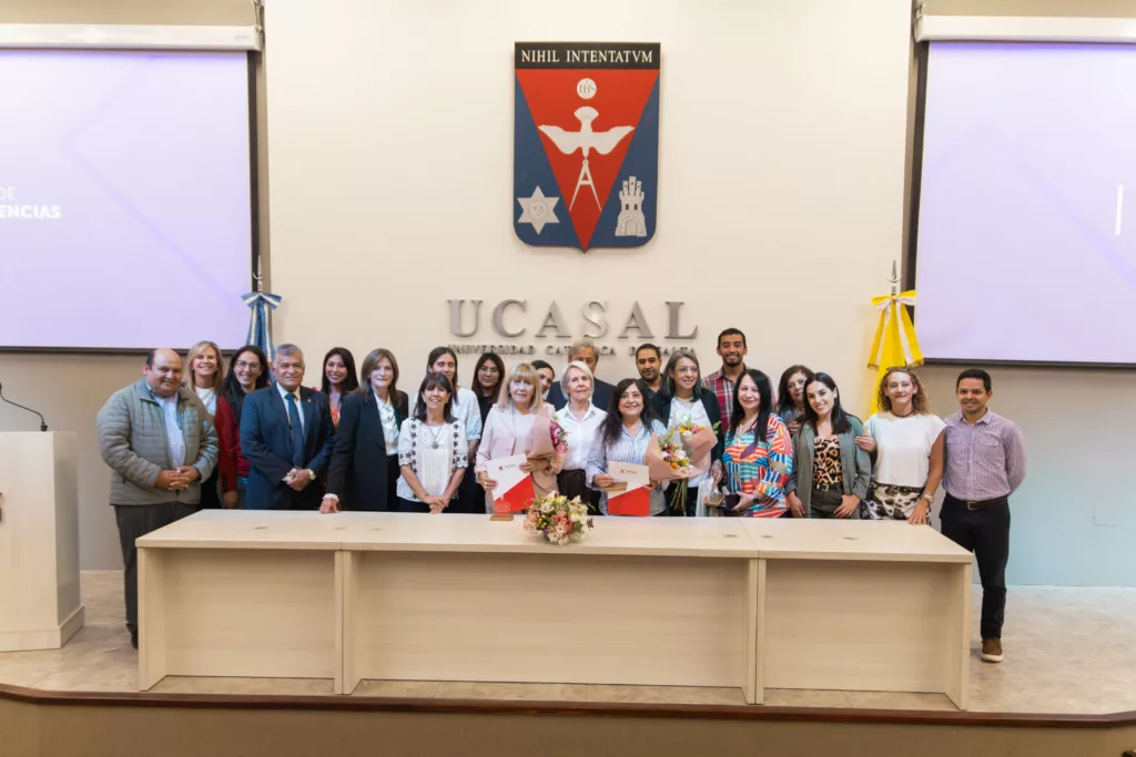 El encuentro se realizó en el Aula Magna de UCASAL, con la presencia de la Decana Lic. Dolores Medina Bouquet, el Vicerrector de Formación, Pbro. Dr. Cristian Arnaldo Gallardo, la Secretaria Académica, Dra. Adriana Ibarguren, y la Jefa del Departamento de Psicología, Lic. Sonia Guijarro.