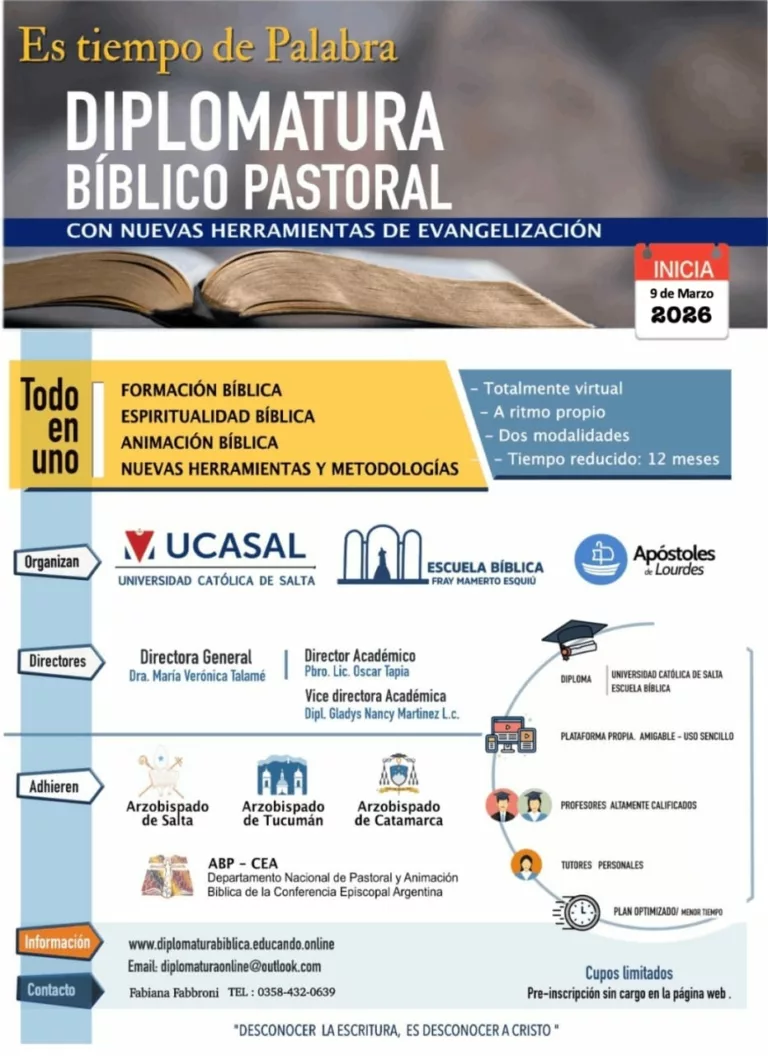 Con el objetivo de seguir ofreciendo espacios de formación y reflexión, se lanza una nueva comisión de la Diplomatura en Actualización Bíblica con nuevas herramientas para la evangelización, una propuesta pensada para quienes desean profundizar en los contenidos de los libros bíblicos y enriquecer su mirada pastoral y formativa.