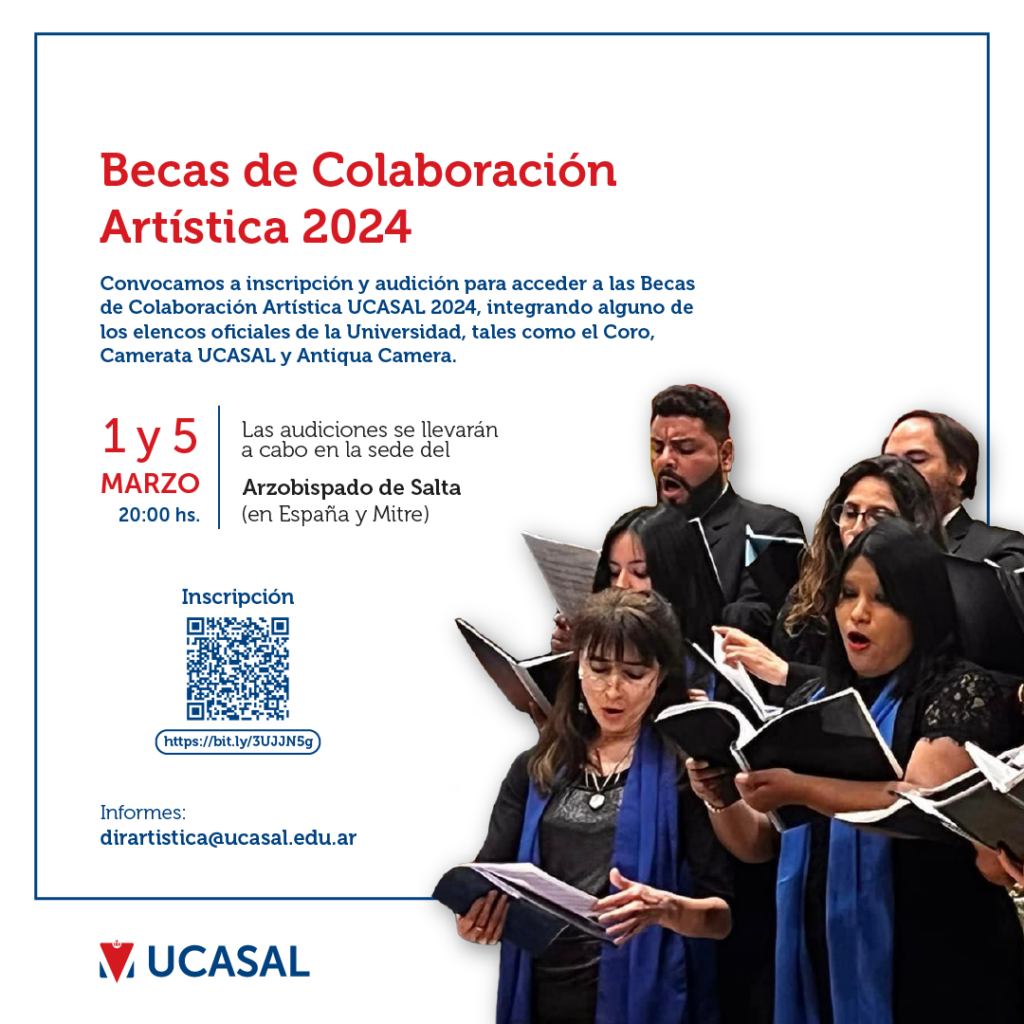 Te invitamos a participar de las audiciones e inscripciones para acceder a las Becas de Colaboración Artística UCASAL 2024.