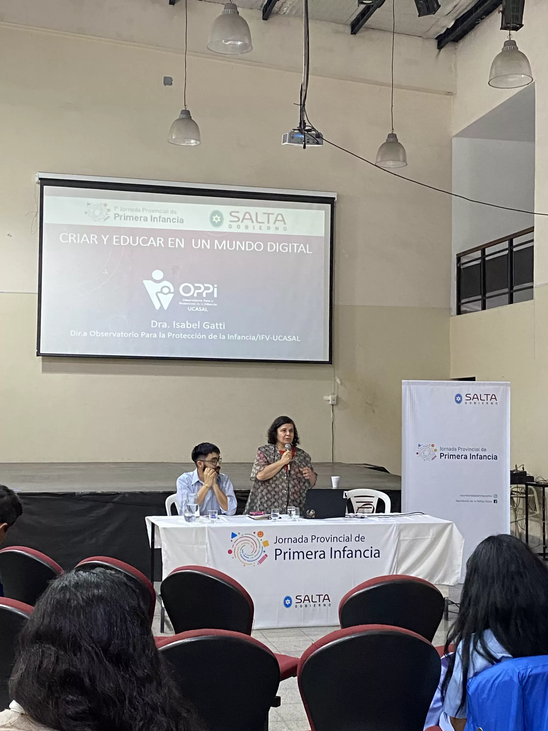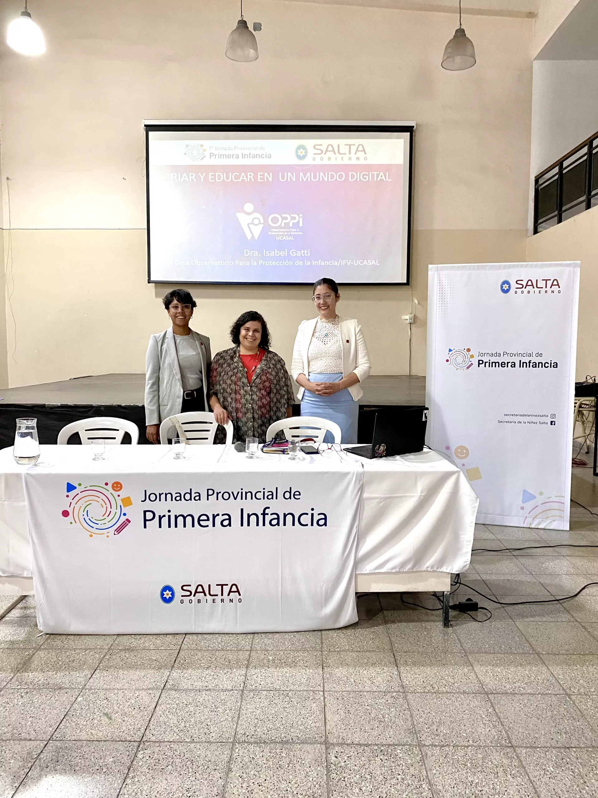 En representación de UCASAL asistieron la Mg. Karina Puente, jefa de carrera del Profesorado Universitario de Educación Inicial y Primaria, y el equipo del OPPI. La Dra. Isabel Gatti, directora del Observatorio, fue especialmente convocada como disertante con la conferencia “Crianza y educación digital”, en el marco de las reflexiones sobre bienestar digital desde los primeros años.