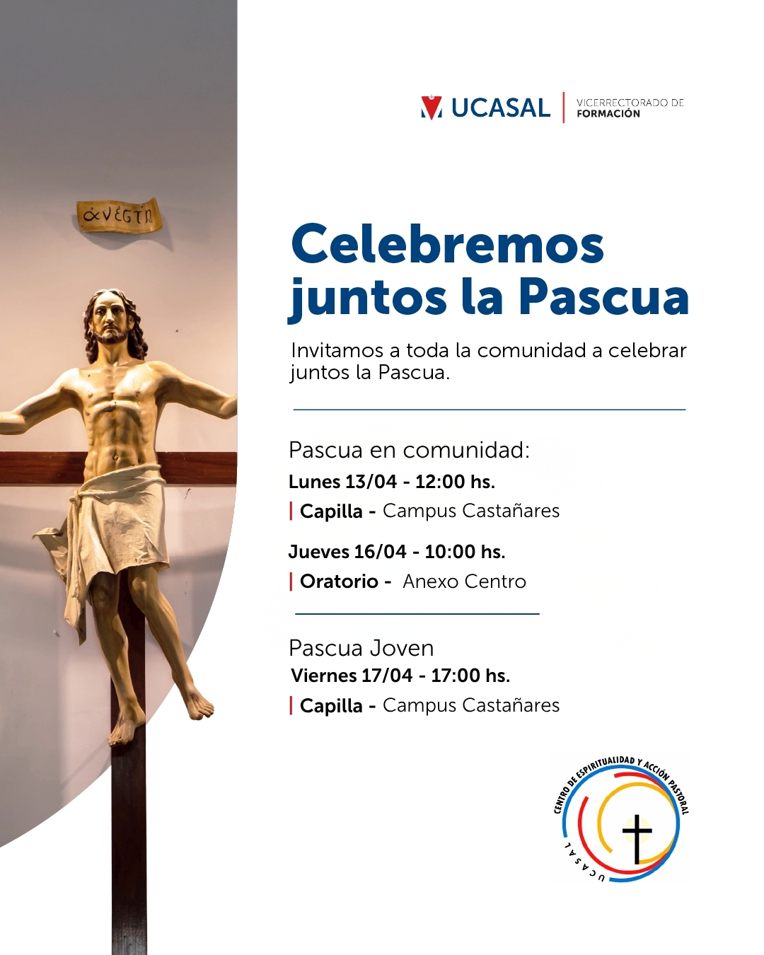 Desde el Vicerrectorado de Formación invitamos a toda la comunidad UCASAL a vivir este tiempo de encuentro, reflexión y celebración. Una oportunidad para renovar la fe, fortalecer los vínculos y compartir como comunidad universitaria.