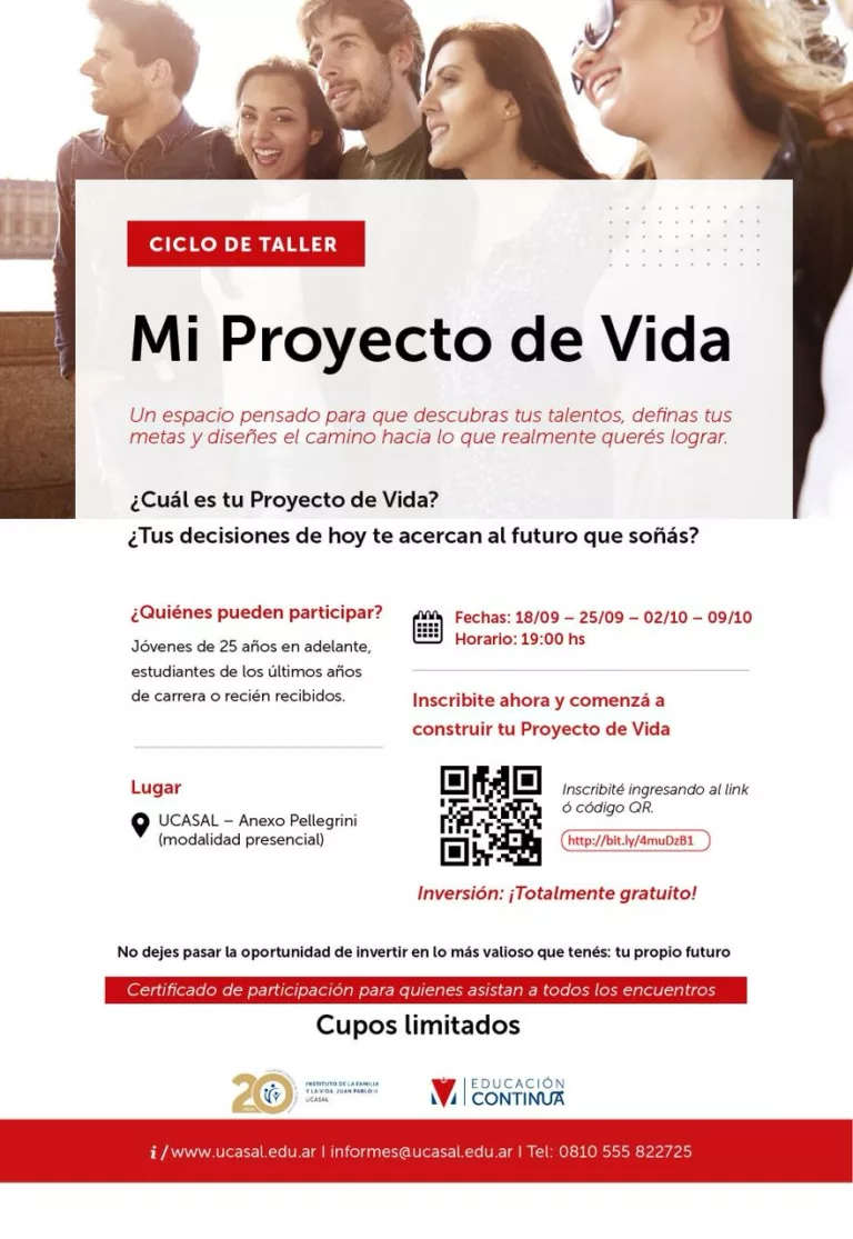 Pensar en el futuro y proyectar metas personales y profesionales es un desafío que, muchas veces, requiere de un espacio de reflexión y acompañamiento. Con esta premisa, la Universidad Católica de Salta (UCASAL) lanza el Ciclo de Taller “Mi Proyecto de Vida”, una propuesta gratuita destinada a jóvenes de 25 años en adelante, estudiantes de los últimos años de carrera o recién graduados, que deseen trabajar en el diseño de su propio camino hacia el futuro.