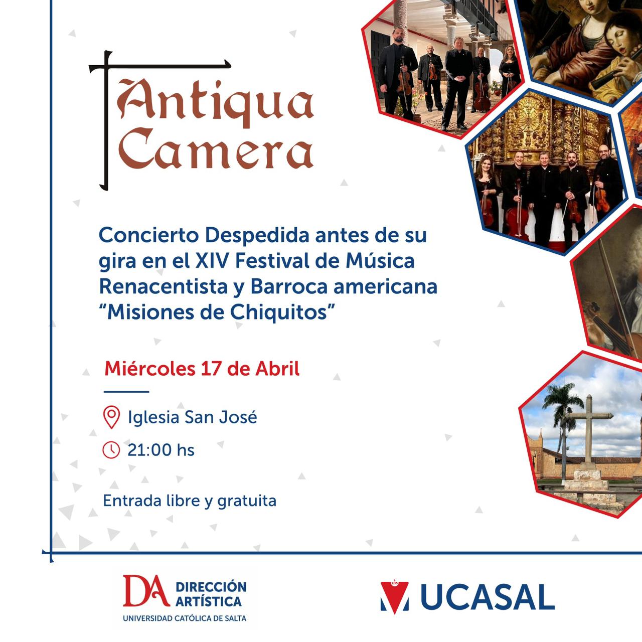 UCASAL te invita a participar el próximo miércoles, 17 de abril, del Concierto Despedida de la Antiqua Camera antes de su gira en el XIV Festival de Música Renacentista y Barroca americana “Misiones de Chiquitos”.