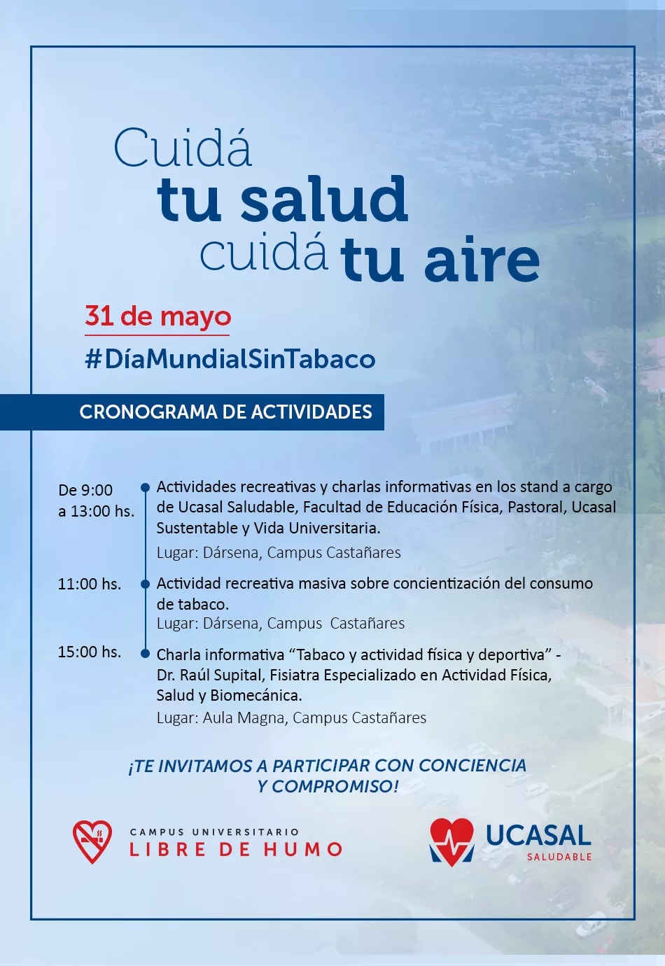 UCASAL es un campus universitario Libre de Humo. Cuidá tu salud, cuidá tu aire.