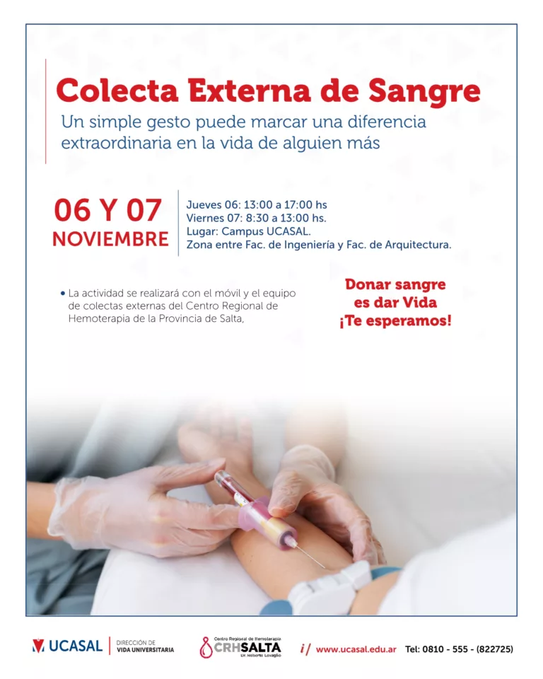 Invitamos a toda la comunidad universitaria a participar de esta acción solidaria que puede salvar vidas. Donar sangre es un acto sencillo, seguro y profundamente humano.