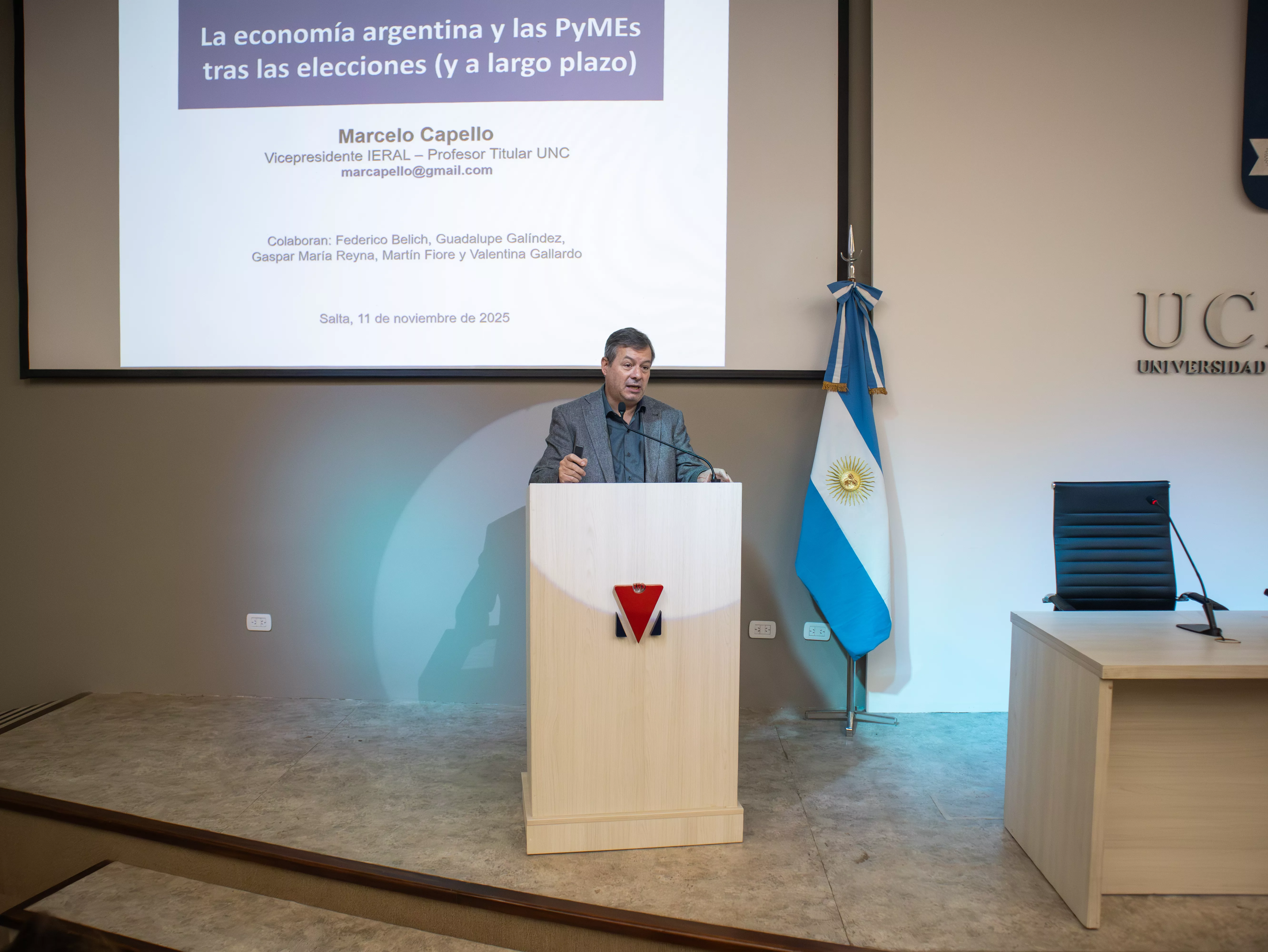 El pasado martes 11 de noviembre, la Universidad Católica de Salta (UCASAL) fue sede del encuentro “Economía Argentina – PyMES en Acción: Salta”, organizado por la Fundación Mediterránea. La actividad reunió a economistas, empresarios y referentes del sector productivo del NOA para analizar la coyuntura económica nacional y debatir los principales desafíos que atraviesan las pequeñas y medianas empresas de la región.