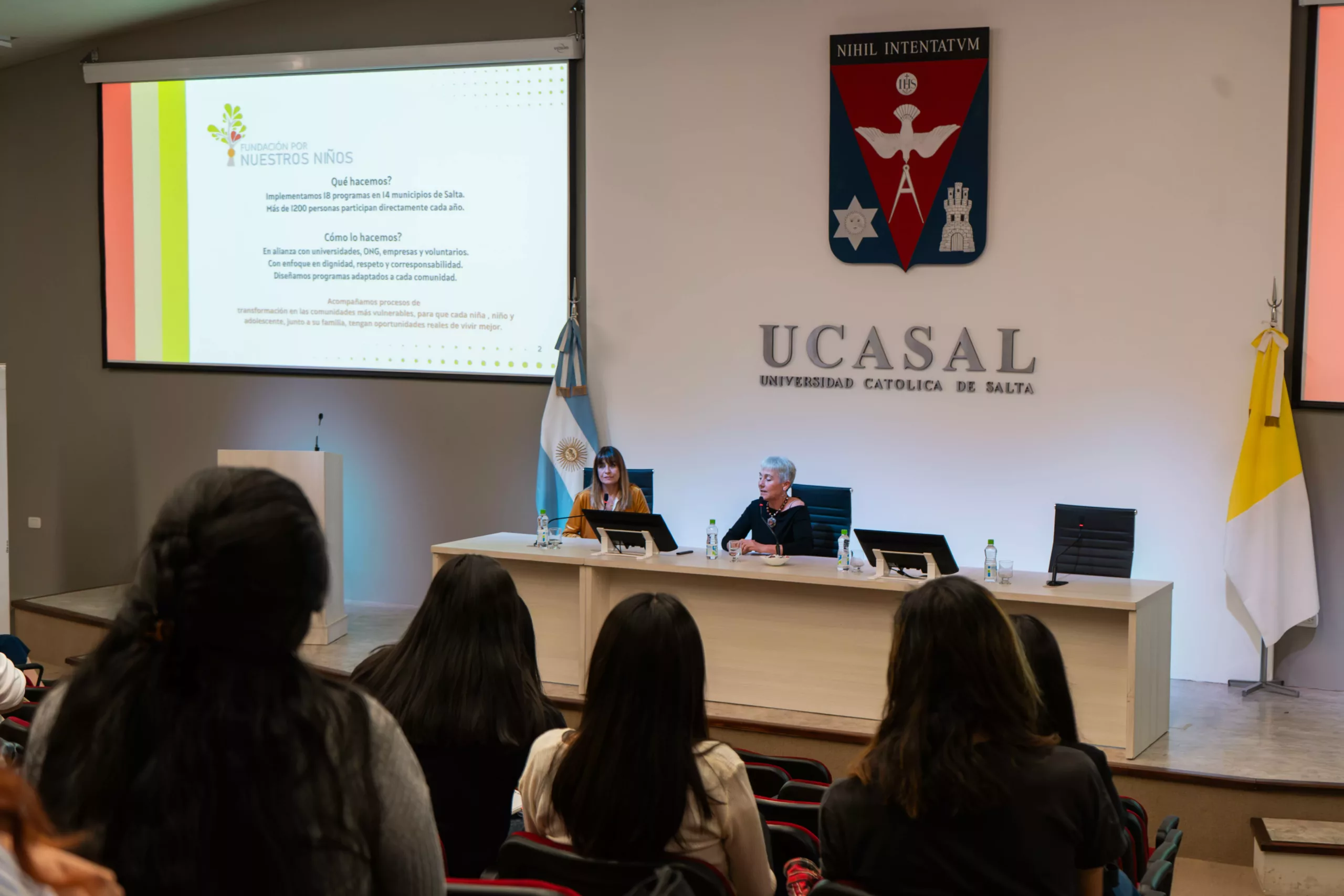 Durante la charla, compartió su experiencia, algunos de los casos que llegaron a la fundación y el modo en que se trabaja para garantizar que los niños puedan vincularse con sus padres. El rol de la universidad, destacó Arias Uriburu, es “fundamental” para implementar y hacer cumplir los derechos de la infancia. “Los jóvenes vienen con la flexibilidad que se necesita a nivel pensamiento, creencias y contenidos. Confío mucho en la juventud”, remarcó acerca de los futuros profesionales.