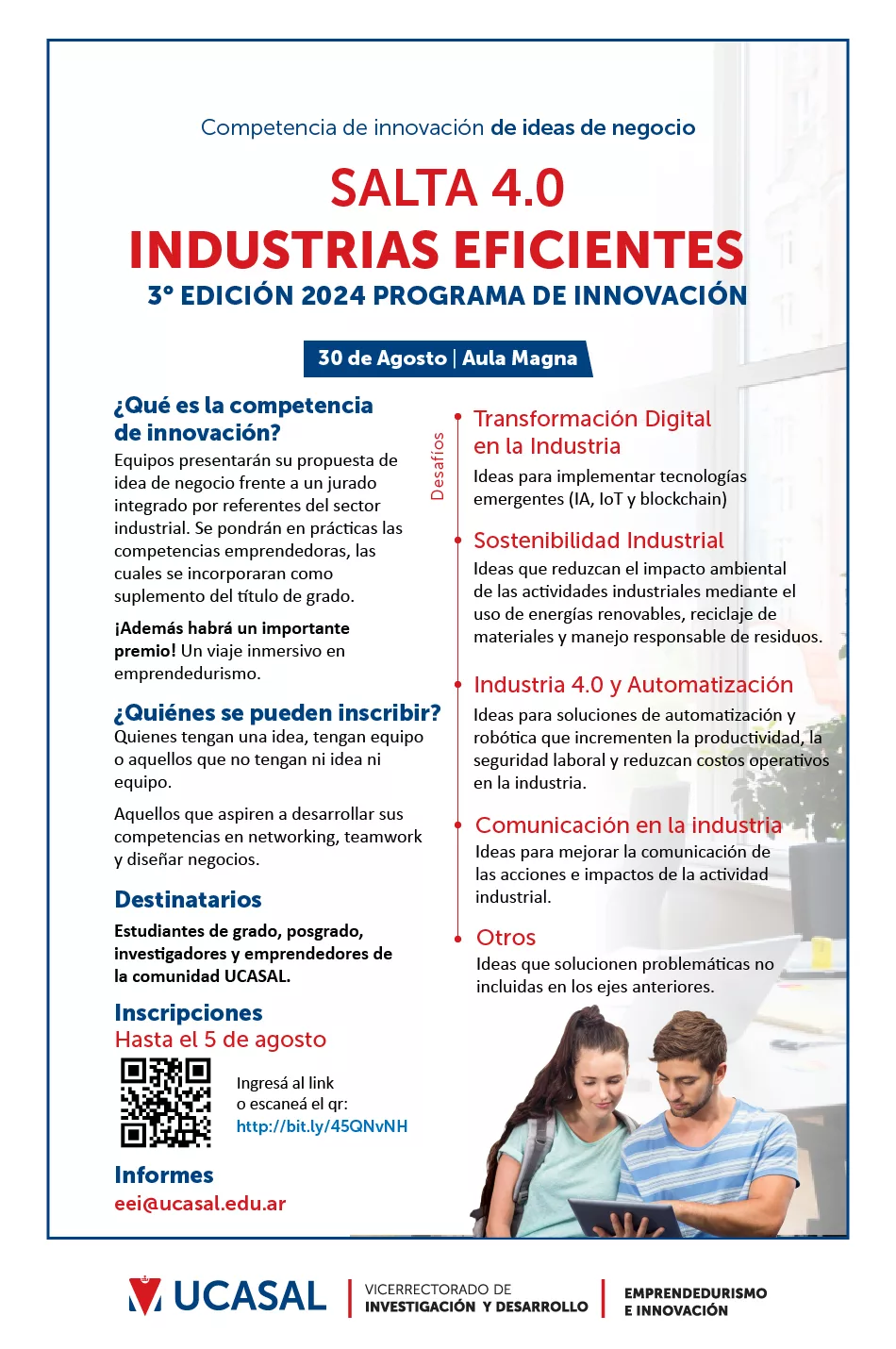 Toda la comunidad UCASAL está invitada a participar con sus ideas de negocio. Las inscripciones son hasta el 5 de agosto.