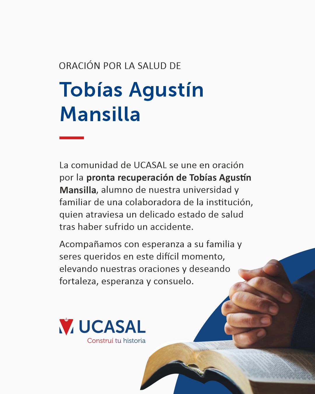 La comunidad UCASAL se une en oración por la pronta recuperación de Tobías, acompañando con esperanza a su familia y seres queridos en este momento difícil.
