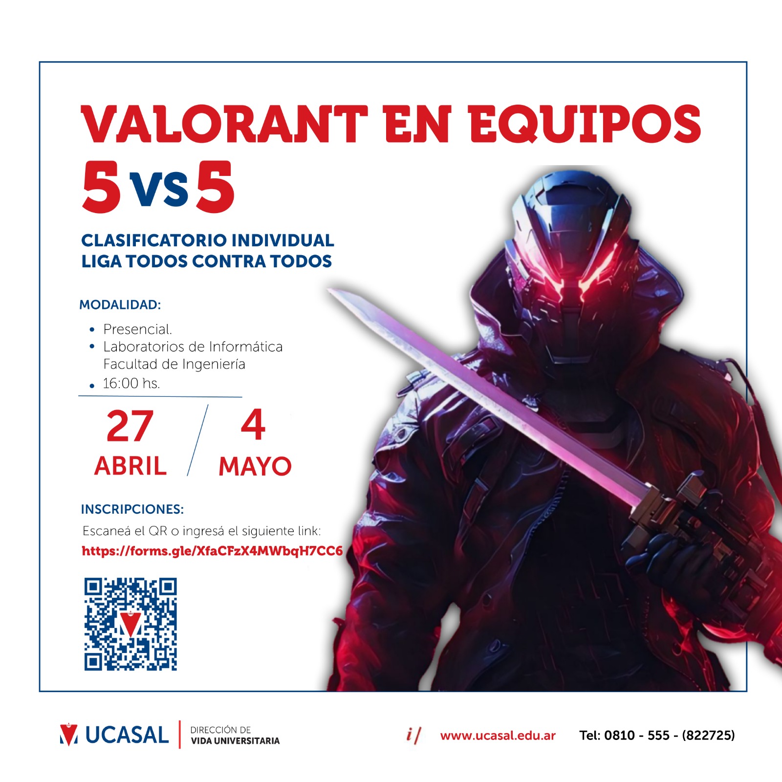 ¡Te invitamos a jugar! Torneo Valorant en equipos 5 vs 5 para la comunidad UCASAL.