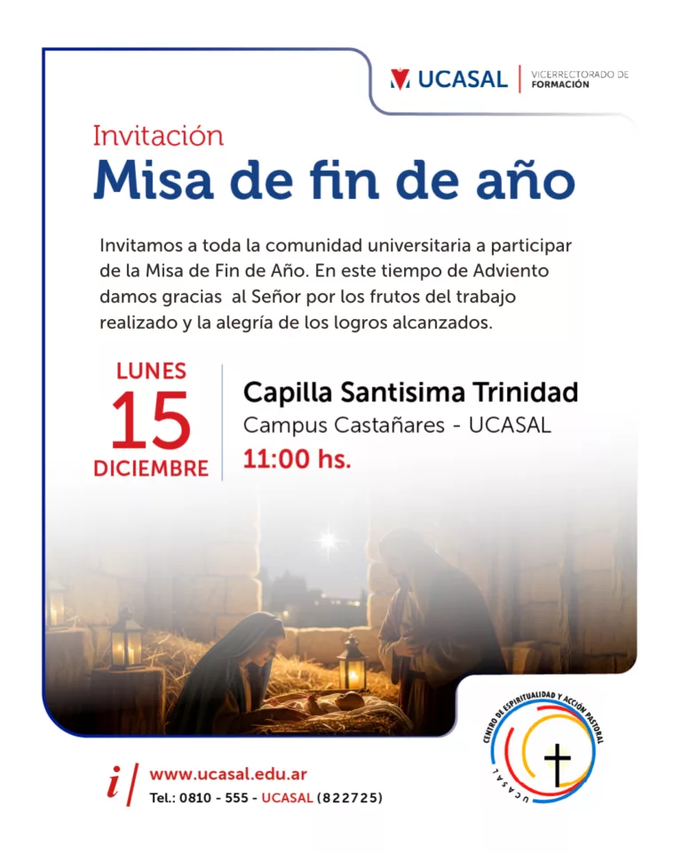 En el espíritu del Adviento, la comunidad de UCASAL se prepara para reunirse en una Misa de Fin de Año que invita a la gratitud, al encuentro y a la esperanza. Será un momento para agradecer los logros alcanzados durante este 2025 y poner en manos de Dios los desafíos que vienen.