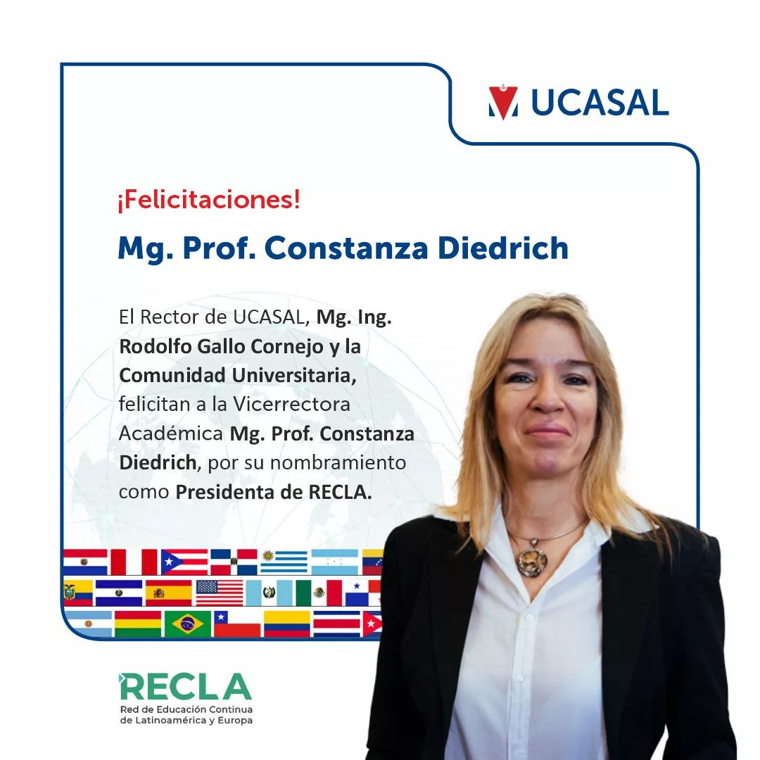 La Vicerrectora Académica de la UCASAL, Mg. Constanza Diedrich fue elegida como Presidenta al obtener el 58% de los votos de los representantes de más de cien universidades de 21 países.