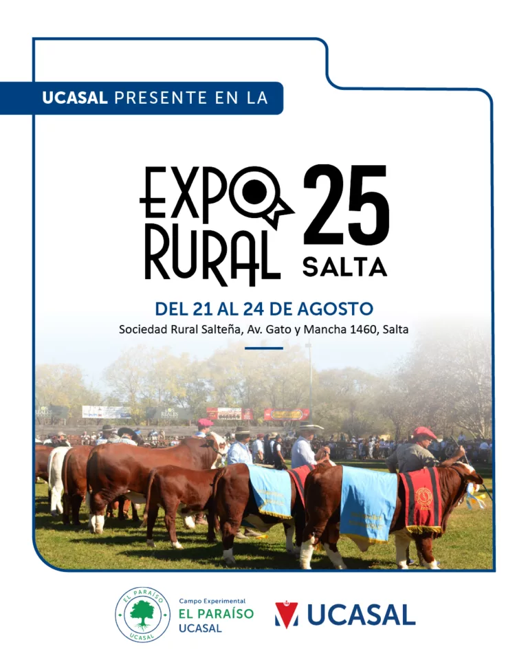 Del 21 al 24 de agosto, la Universidad Católica de Salta participará de una nueva edición de la Expo Rural Salta, que se llevará a cabo en la Sociedad Rural Salteña (Av. Gato y Mancha 1460). Será una oportunidad para compartir con la comunidad las propuestas académicas y actividades que UCASAL desarrolla en el ámbito de la educación, la investigación y el compromiso social.