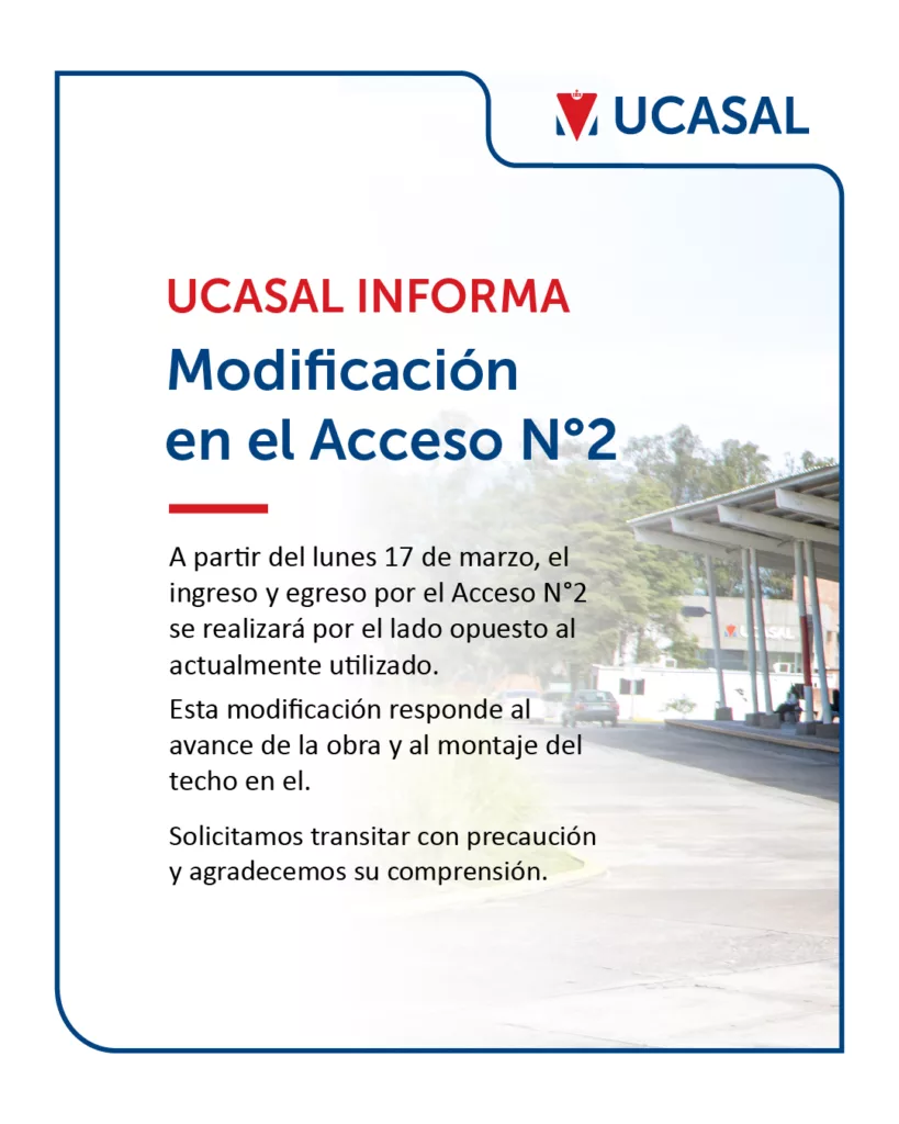 A partir del lunes 17/03 el ingreso y egreso por el Acceso N°2 se realizará por el lado opuesto al actualmente utilizado, debido al avance de la obra con el montaje del techo en el otro sector.