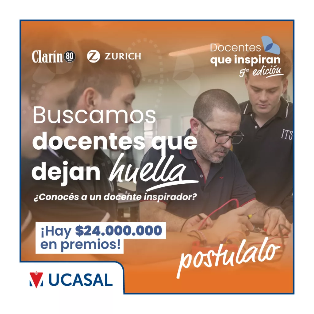 Docentes que Inspiran es una propuesta de Clarín y Zurich que, con el apoyo de UCASAL, reconoce a aquellos educadores que hacen una diferencia en la vida de sus estudiantes y su comunidad.