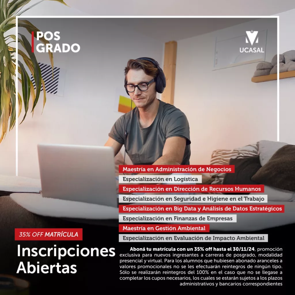 Beneficio exclusivo para nuevos ingresantes a carreras de posgrados- modalidad virtual de la Facultad Escuela de Negocios.
